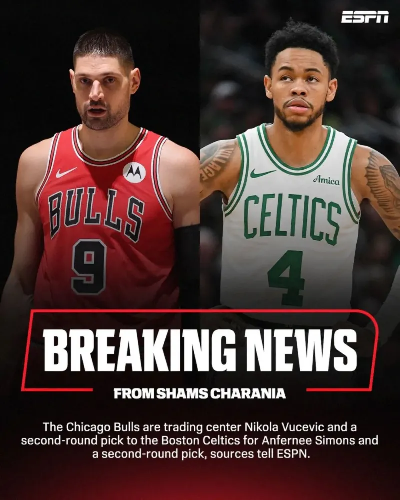 来自名记Shams的报道,凯尔特人和公牛达成了一笔交易,具体细节: